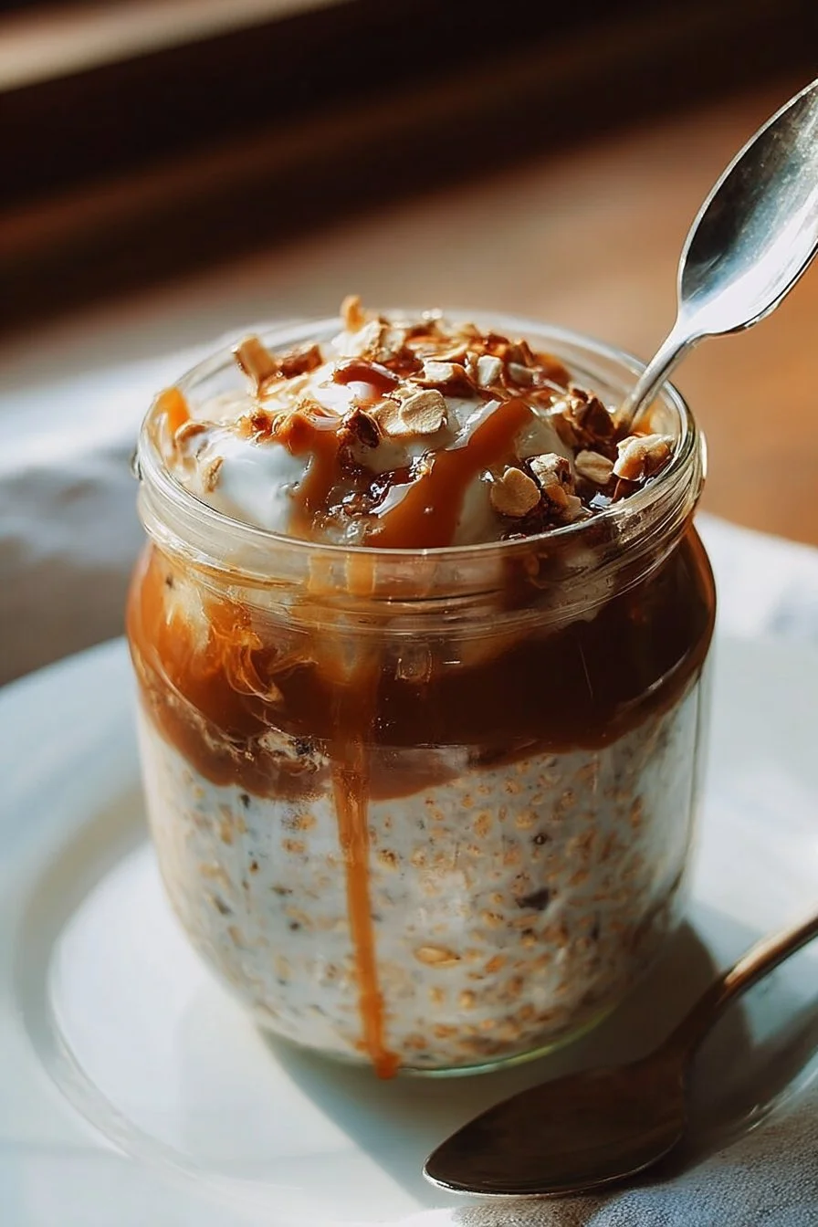 Dig in and enjoy your Caramel Macchiato Overnight Oats, a breakfast that’s both satisfying and indulgent!