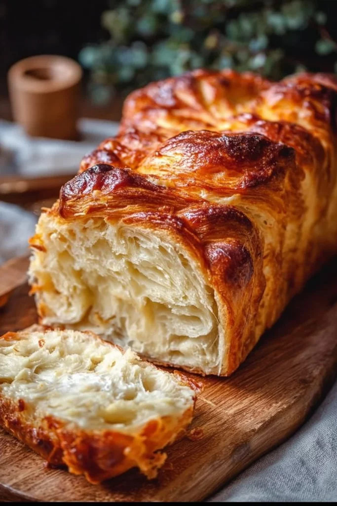 A delicious and cheesy homemade croissant bread loaf perfect for family dinners.