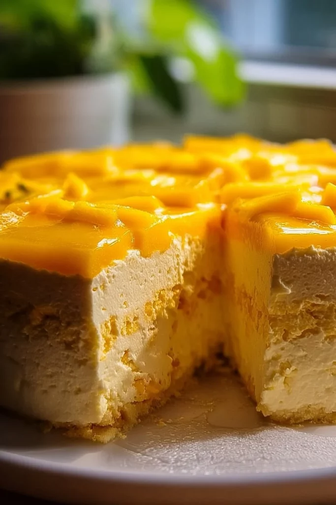 A delightful no-bake treat combining the creamy flavors of cheese with the sweetness of fresh mango.